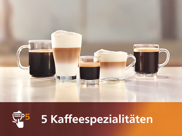 - 5 coffee specialities at the touch of a button: enjoy and personalise your favourite coffee in no time at all