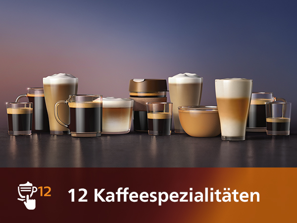 - 12 Kaffeespezialitäten auf Fingertipp: Genießen Sie Ihren Lieblingskaffee, vom kräftigen Espresso bis zum milden Cappuccino