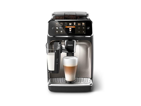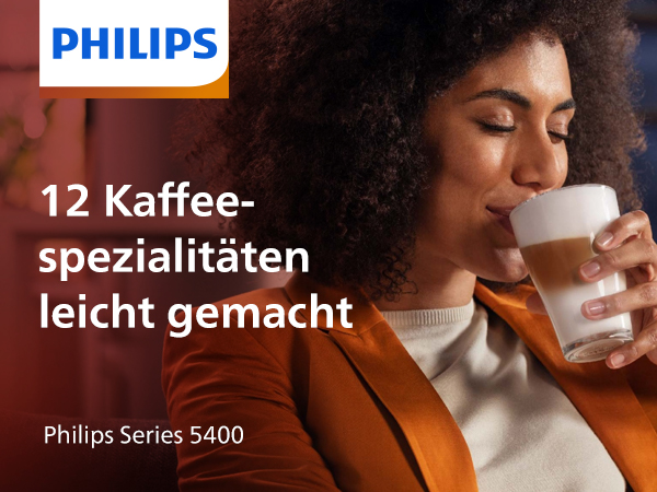 Der Philips Series 5400 Kaffeevollautomat ist eine Espressomaschine, die sich für die Zubereitung von 12 köstlichen Kaffeespezialitäten aus frischen Kaffeebohnen eignet. Das Gerät glänzt mit einem intuitiven Touchdisplay und einem schlichten Design. Dank der Ausstattung mit Mahlwerk und Milchschäumer lässt diese Kaffeemaschine keine Wünsche offen. Bis zu 4 Personen können ihre ganz persönlichen Kaffeevorlieben zum späteren Abruf speichern.Material Chrom Filtertyp Wiederverwendbar Stil 12 Kaffespezialitäten Spezifische Verwendungsmöglichkeiten für Produkt water_filter, cup_warmer, milk_frother Empfohlene Anwendungen für Produkt Voyage Artikelgewicht 22,05 Pfund Betriebsmodus Vollautomatisch Wattzahl 1500 Watt Spannung 230 Volt Modellname LatteGo Anzahl der Artikel 1 Eingabe über menschliche Schnittstelle Touchscreen, Tasten Pakettyp Traditionelle Verpackung Modellnummer EP5447/90 Produktabmessungen 50 x 48 x 30 cm; 10 Kilogramm Weitere Spezifikationen Integrierte Kaffeemühle(Integrierte Kaffeemühle) Artikelgewicht 10 Kilograms