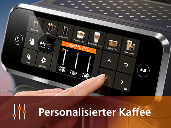 - Mit der benutzerfreundlichen Bedienoberfläche können Sie Ihren Lieblingskaffee mühelos auswählen und an Ihre Vorlieben anpassen
